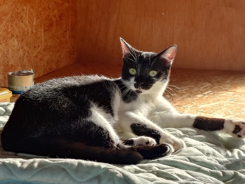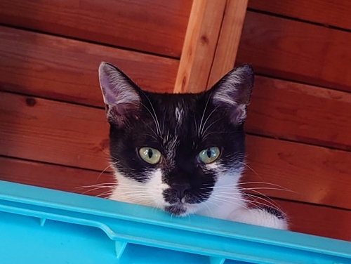 親離れをしたばかりで常にグミちゃんと一緒にいましたが、子猫だけでの越冬は厳しすぎるために、2023年12月にシェルターに保護しました。