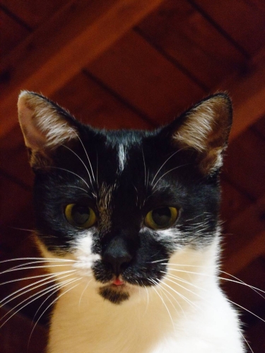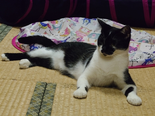 おでこの白い模様が矢傷のように見えて、矢→アロー→アロちゃんと命名しましたが、今では矢のごとくおもちゃに向かっていく、元気な子です。