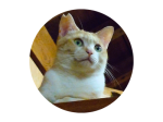 キジ白 1歳の女の子。エニちゃんは車に尻尾を轢かれて断尾手術をきっかけにうちに来た子です。尻尾は……